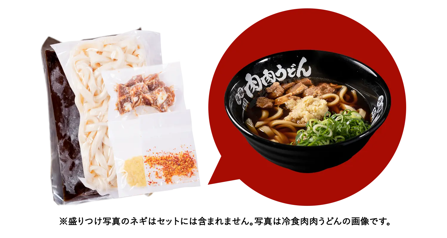 お店と同じ肉肉うどんを再現出来る冷食のキットをご用意しているので、