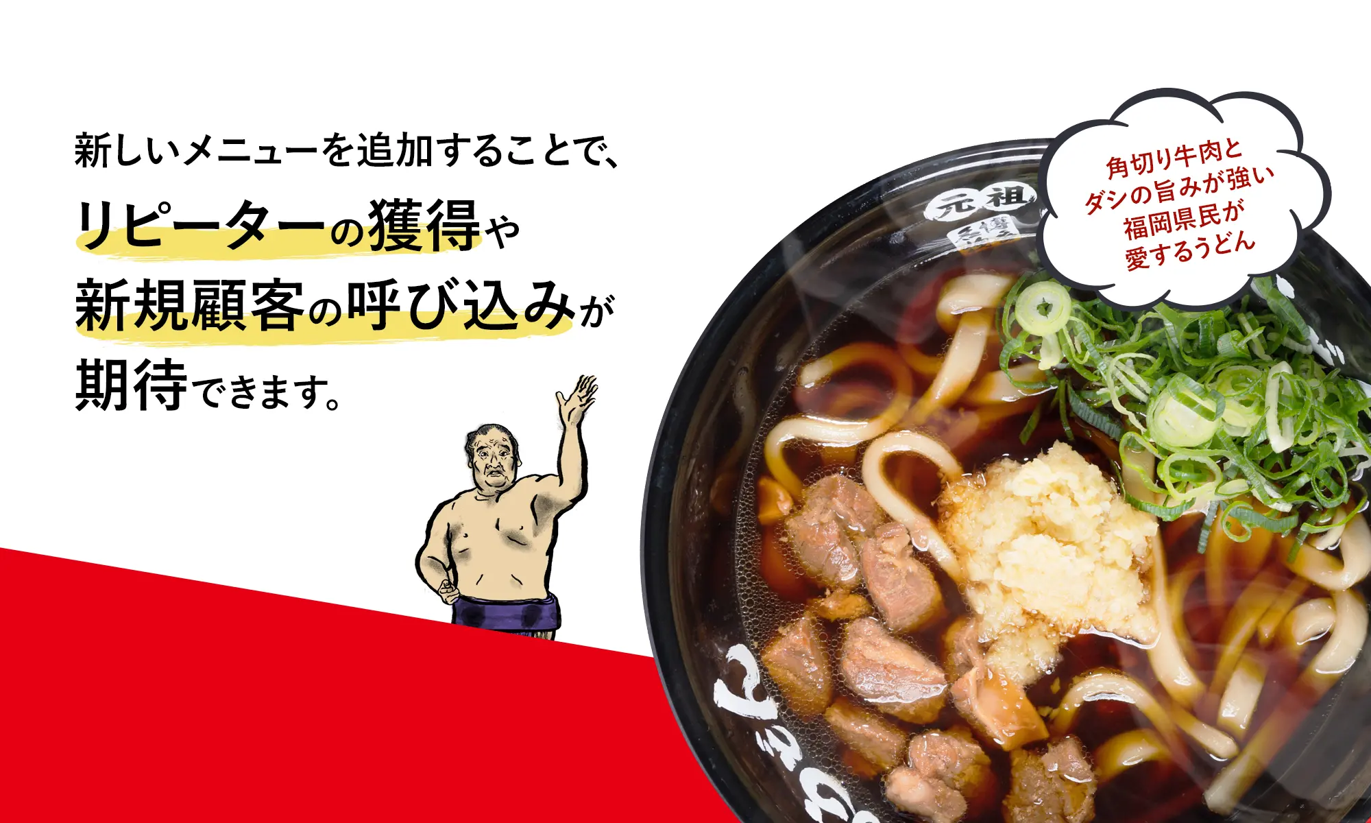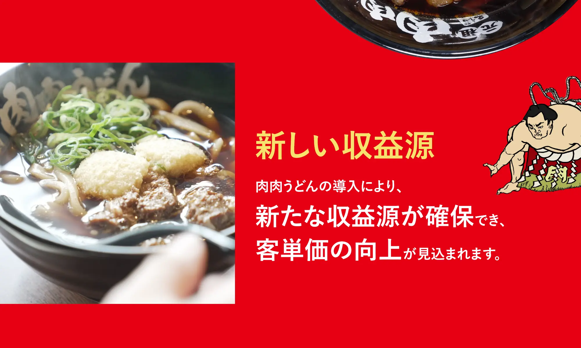 肉肉うどんを加えませんか?私たちは、地域の魅力を引き立てる新しいメニューとして、肉肉うどんを提供する提携店舗を募集しています。
